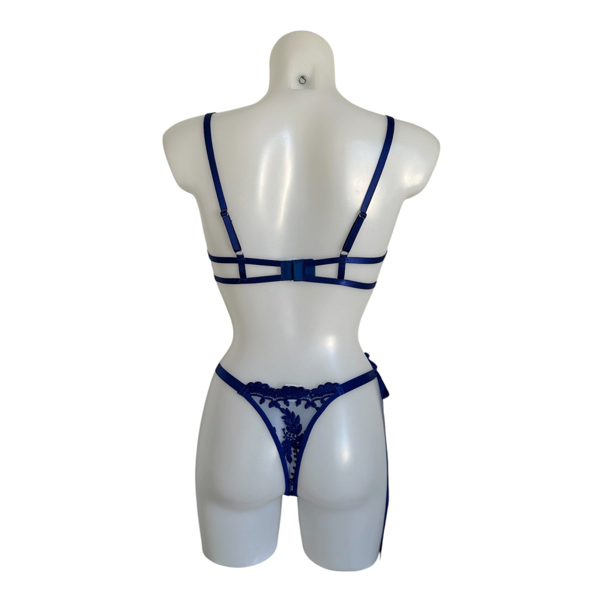 Laissez-vous séduire par cet ensemble lingerie en dentelle bleu profond…Un mélange parfait de raffinement, féminité et confiance
